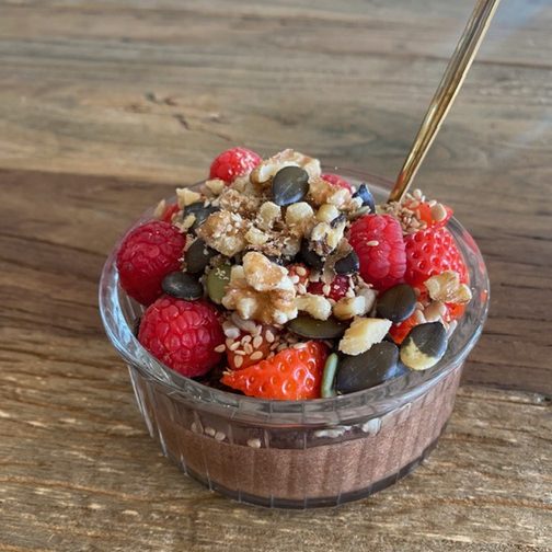 This cosy whole food chocolate pudding is naturally gluten free and made from simple pantry ingredients like oats, chia, honey, and cacao. The hidden dark chocolate pieces melt into rich pockets of gooey goodness. It's the perfect warm dessert.