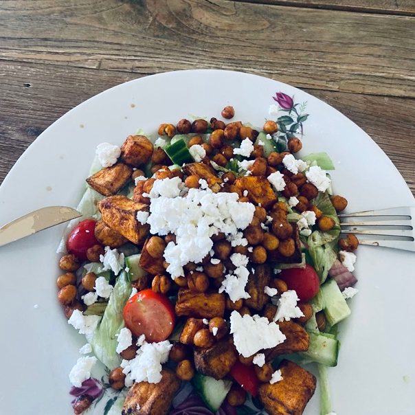 A warm, nourishing gluten-free salad packed with flavour. Roasted sweet potato and crispy chickpeas are tossed with fresh greens, lemon dressing, and creamy feta for the perfect easy lunch or weeknight dinner. High fibre, protein rich, and naturally gluten free. This is the kind of simple whole-food meal you’ll make on repeat.